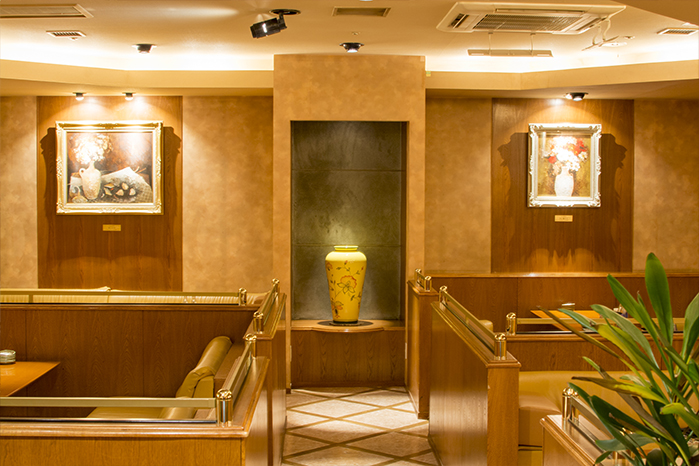 ゴールド基調の、高級感が漂う広々とした2Fフロア