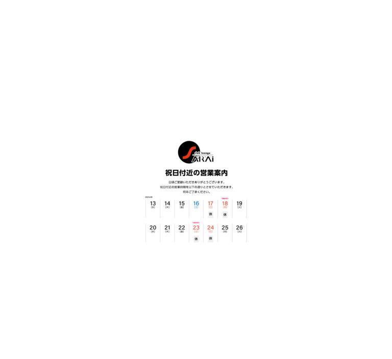 13日(日・祝)、14日(月・祝)にお休みをいただき、